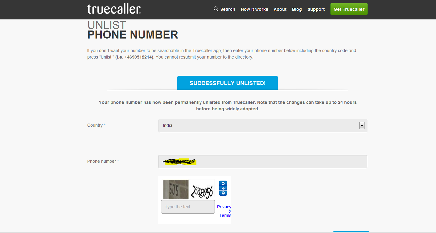 1- Click Here to Go True caller Unlist Web page. This is official website of True caller here you will see this page